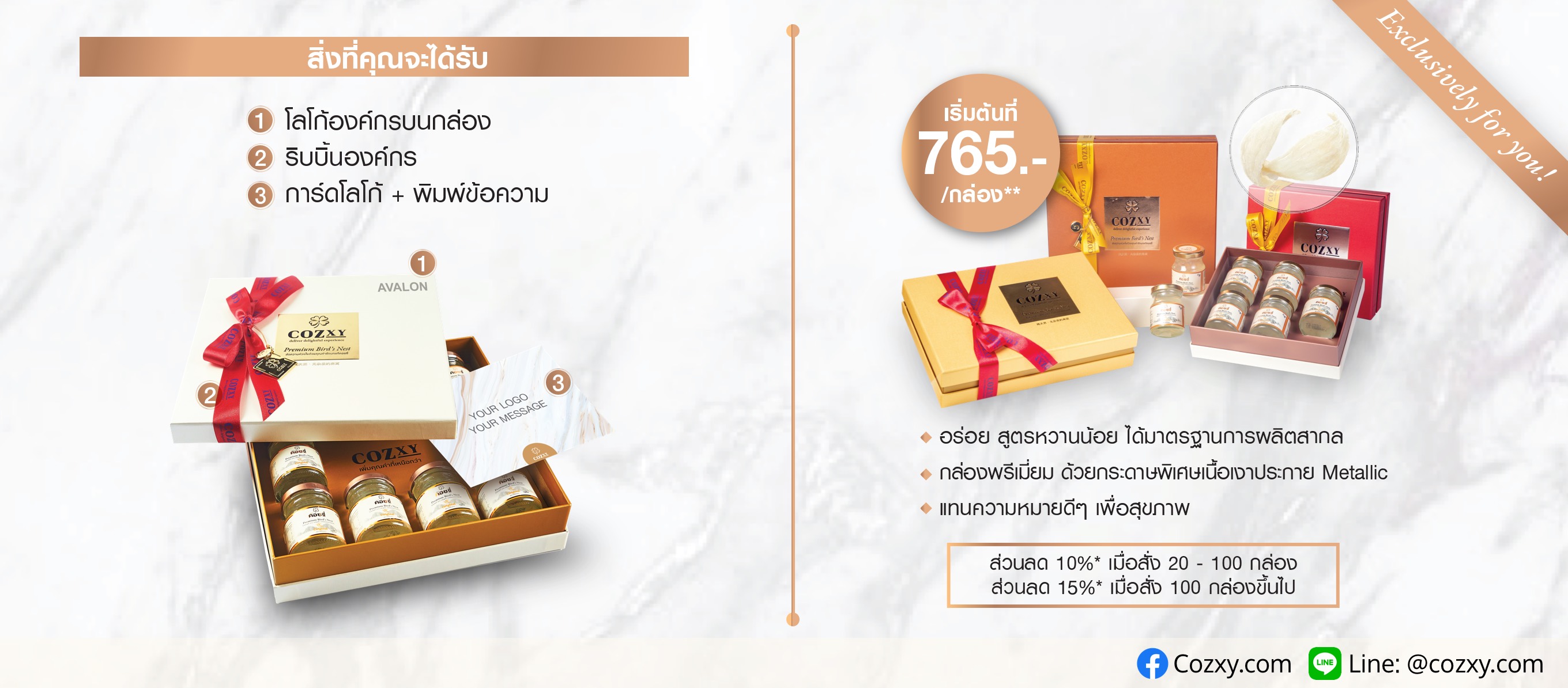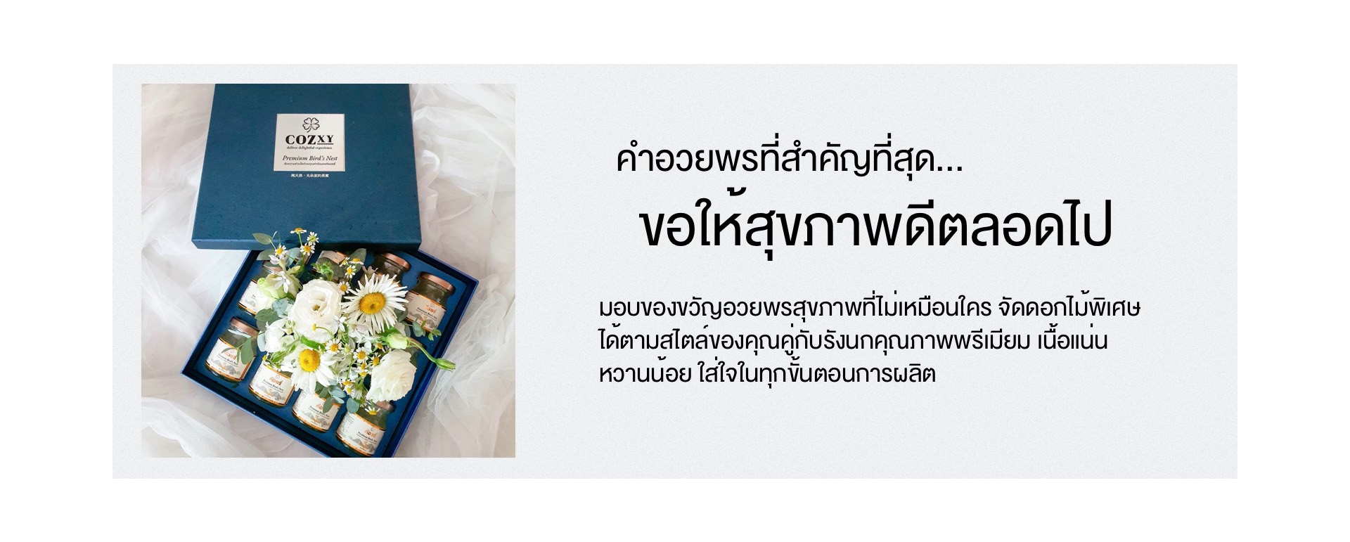 เครื่องดื่มรังนกแท้ คอซซี่ สำหรับคนรักสุขภาพ แสดงความห่วงใยจากผู้ให้ จัดเรียงรังนกสร้างเรื่องราวเฉพาะ และการ์ดที่สามารถระบุข้อความในแบบของคุณ เลือกธีมที่เหมาะ สื่อเอกลักษณ์ของคุณ