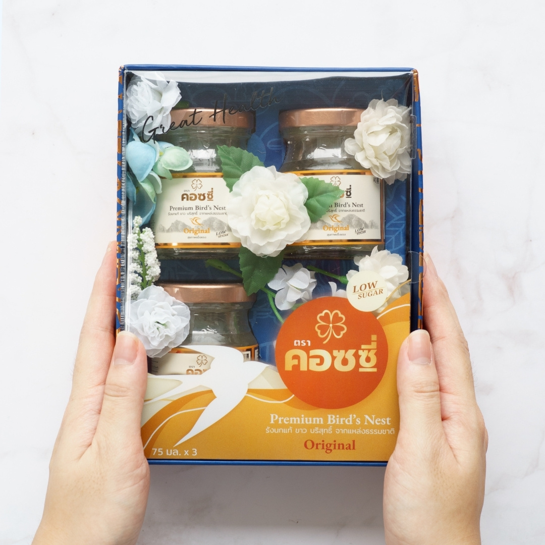 คอซซี่ รังนกจากแหล่งในประเทศไทย เป็นที่ยอมรับว่ามาจากแหล่งที่มีความอุดมสมบูรณ์ มีการควบคุมขั้นตอนการเก็บรังอย่างถูกต้อง ผ่านวิธีการคัดสรรเกรดรังนกให้ตรงตามมาตรฐาน เพิ่มปริมาณเนื้อรังนกในขวด สูตรตุ๋นต้นตำรับ หวานน้อย มี Sialic Acid ช่วยฟื้นฟูร่างกายและคงความอ่อนวัย