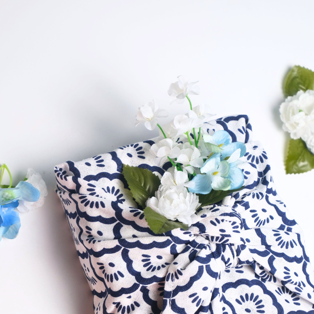กล่องของขวัญ รังนกแท้พรีเมี่ยม 3 ขวด ห่อผ้าฟุโรชิกิ - Mother's day White NAVY BLUE