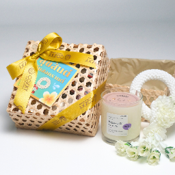 Songkran Petite Set เซ็ตตะกร้าสงกรานต์เพื่อความผ่อนคลาย เทียนหอม240g และมาลัยดอกไม้ประดิษฐ์ ตะกร้าสงกรานต์