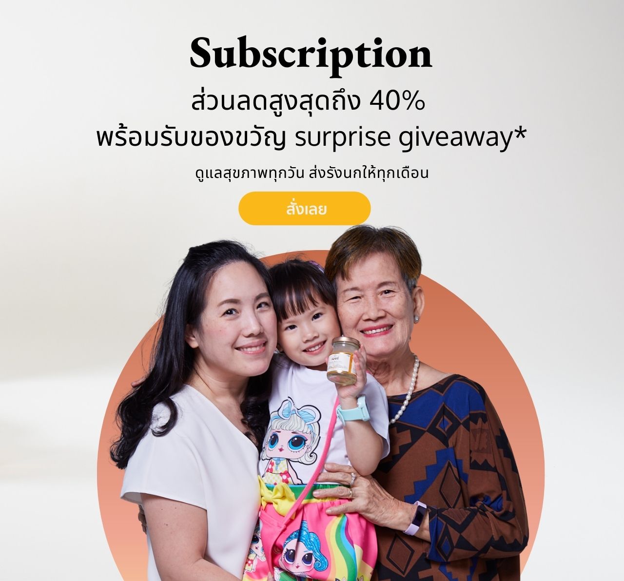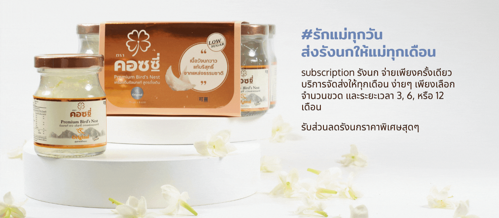 Subscription คือการสั่งล่วงหน้าเพื่อรับสินค้าจัดส่งให้รายเดือน เป็นบริการที่จะช่วยให้คุณสะดวกกับการสั่งซื้อ ได้รับส่วนลดที่เพิ่มขึ้น และของขวัญ สิทธิพิเศษมากมายก่อนใครๆ โดยคุณสามารถเลือกจำนวนขวดที่ต้องการรับต่อเดือน และจำนวนเดือนที่ต้องการสั่งรังนกเพียงเท่านี้ เราก็จะส่งตามวันที่กำหนดให้ทุกเดือนทันที อีกทั้งยังสามารถจัดการบริการได้ง่ายๆหากต้องการเลื่อนวันจัดส่งอีกด้วย