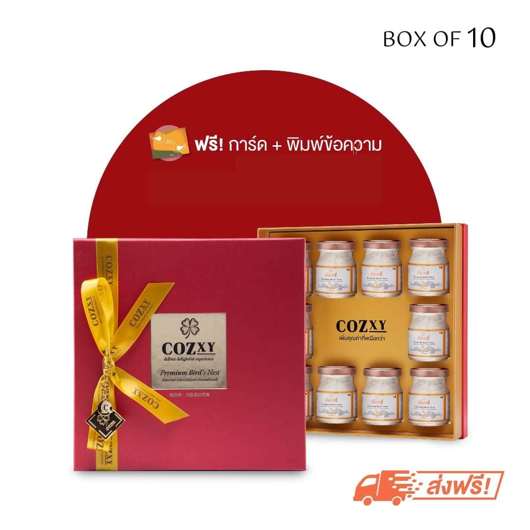 Cozxy Bird's Nest Box Of 10 Original Low Sugar. Our Cozxy Premium Gift Boxes are designed and manufactured so that anyone who receives them feels truly delighted and fulfilled. Not only does it have grand appeal that comes in various colors, but also with the high quality materials, they are created to last. Feel free to cater them for any of your special occasions.