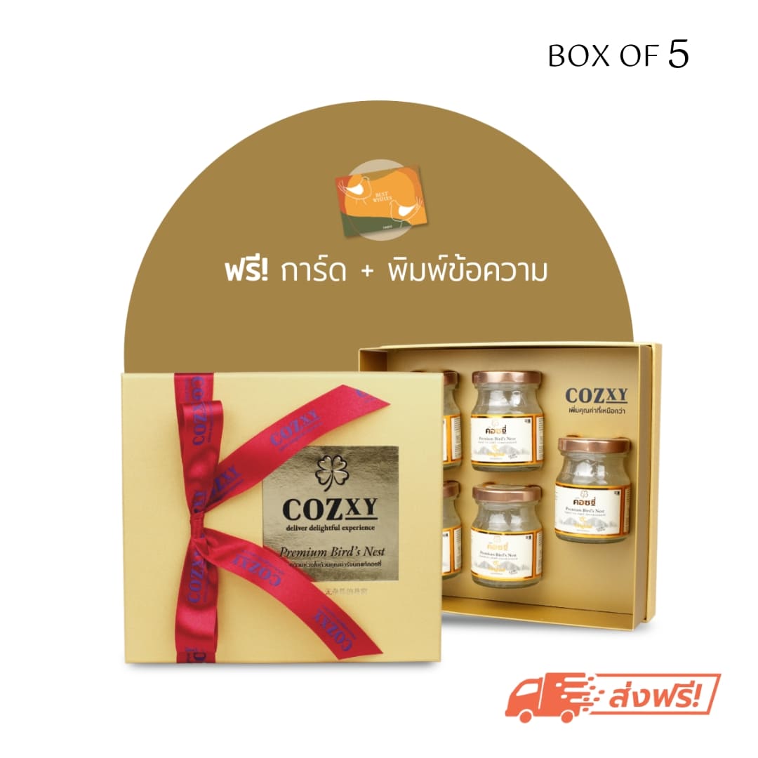 Cozxy Bird's Nest Box Of 5 Original Low Sugar. Our Cozxy Premium Gift Boxes are designed and manufactured so that anyone who receives them feels truly delighted and fulfilled. Not only does it have grand appeal that comes in various colors, but also with the high quality materials, they are created to last. Feel free to cater them for any of your special occasions.