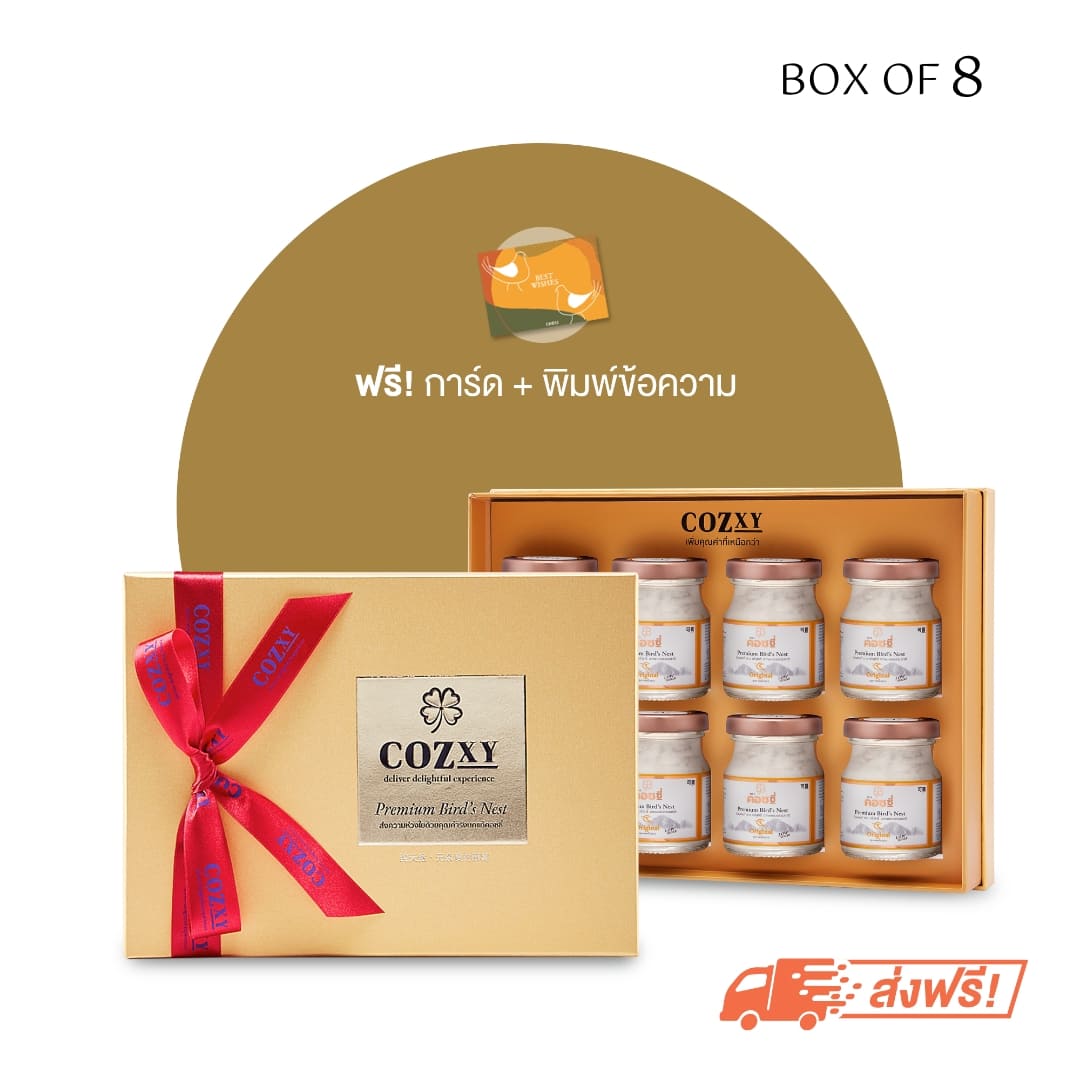 Cozxy Bird's Nest Box Of 8 Original Low Sugar. Our Cozxy Premium Gift Boxes are designed and manufactured so that anyone who receives them feels truly delighted and fulfilled. Not only does it have grand appeal that comes in various colors, but also with the high quality materials, they are created to last. Feel free to cater them for any of your special occasions.