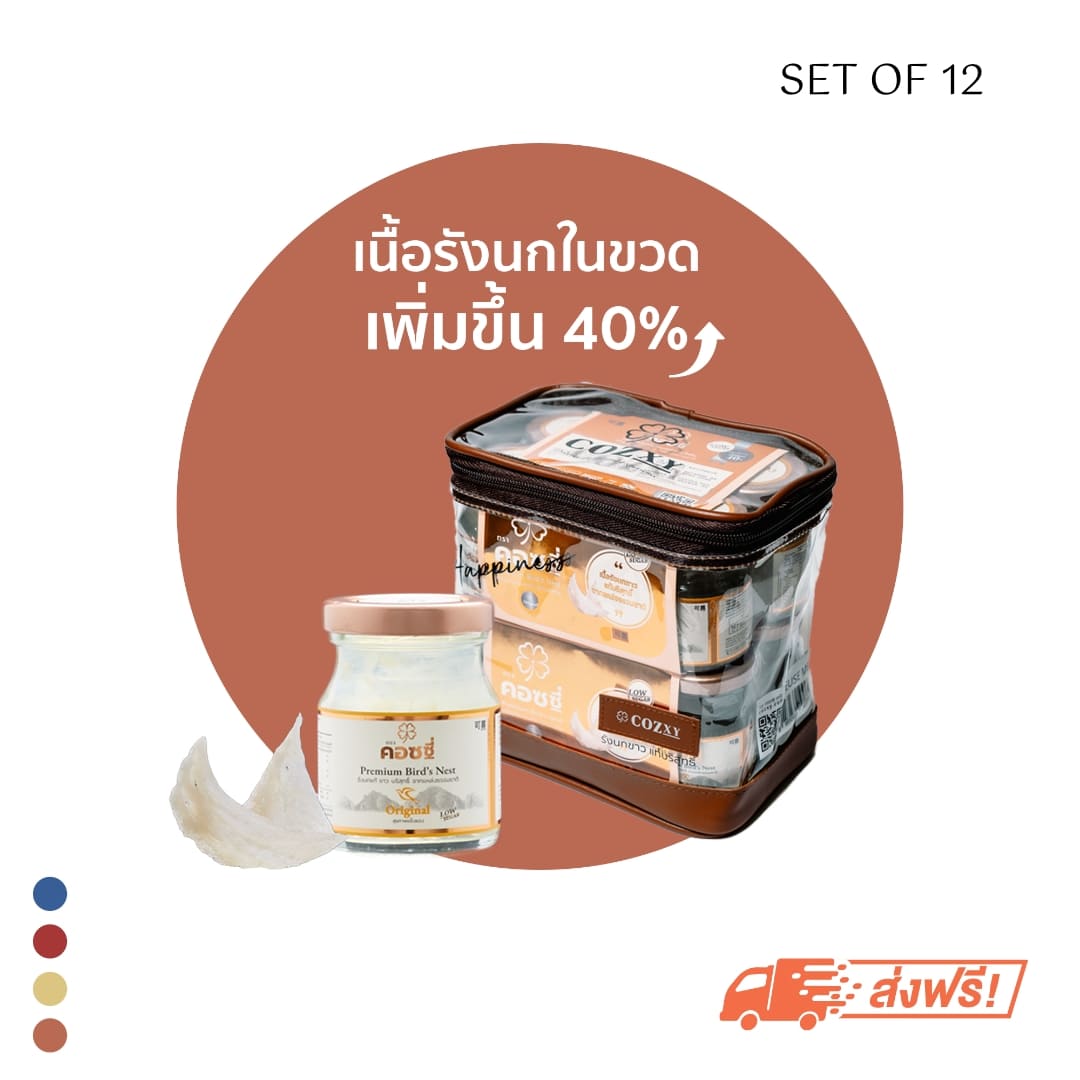 รังนกแท้ คอซซี่ Set 12 ขวด (สุดคุ้ม) สูตรดั้งเดิม หวานน้อย ขวดใหญ่ 75 ml. จากน้ำตาลกรวดคุณภาพ รังนกขาว แท้ บริสุทธิ์ จากแหล่งธรรมชาติ เติมคุณค่าที่มากกว่า ด้วยเนื้อรังนกแท้เพิ่มขึ้นถึง 40% ผ่านขั้นตอนการผลิตด้วยกรรมวิธีที่ทันสมัย ไม่เจือสี และไม่มีวัตถุกันเสีย ได้รสชาติของรังนกแท้ต้นตำรับ เส้นยาว ที่กลมกล่อม จึงรับประทานได้ง่ายสำหรับทุกวัย สามารถดื่มได้ทั้งแบบอุ่นร้อนและแช่เย็น ✔️ รังนกมีสาร Glycoprotein ช่วยฟื้นฟูเซลล์ให้ร่างกาย เสริมภูมิคุ้มกัน บำรุงสมองเพิ่มความจดจำ ดูแลผิวพรรณให้กระจ่างใส ✔️ รังนกมีโปรตีน อีพิเดอร์มอล โกรท แฟคเตอร์Epidermal Growth Factor (EGF) มีหน้าที่กระตุ้นการสร้างผิวหนังใหม่ ซ่อมแซมเซลล์ผิวที่เสื่อมสลายทำให้ชั้นผิวใหม่ดูกระจ่างใสขึ้น ผิวดูชุ่มชื้น และสามารถป้องกันการเกิดริ้วรอยแห่งวัย ✔️ กรดไซอะลิค(Sialic Acid) สามารถช่วยจับเชื้อไวรัส เพื่อป้องกันไม่ให้เชื้อไวรัสเข้าสู่เซลล์ได้ จึงช่วยป้องกันการติดเชื้อไวรัส และแบคทีเรียต่างๆ เข้าสู่ร่างกายได้ดีขึ้น