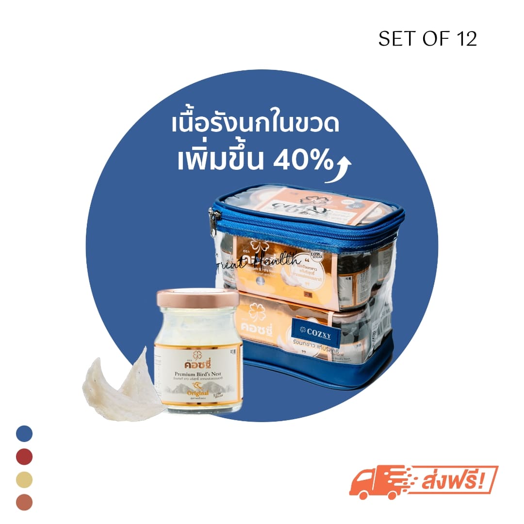 รังนกแท้ คอซซี่ Set 12 ขวด (สุดคุ้ม) สูตรดั้งเดิม หวานน้อย ขวดใหญ่ 75 ml. จากน้ำตาลกรวดคุณภาพ รังนกขาว แท้ บริสุทธิ์ จากแหล่งธรรมชาติ เติมคุณค่าที่มากกว่า ด้วยเนื้อรังนกแท้เพิ่มขึ้นถึง 40% ผ่านขั้นตอนการผลิตด้วยกรรมวิธีที่ทันสมัย ไม่เจือสี และไม่มีวัตถุกันเสีย ได้รสชาติของรังนกแท้ต้นตำรับ เส้นยาว ที่กลมกล่อม จึงรับประทานได้ง่ายสำหรับทุกวัย สามารถดื่มได้ทั้งแบบอุ่นร้อนและแช่เย็น ✔️ รังนกมีสาร Glycoprotein ช่วยฟื้นฟูเซลล์ให้ร่างกาย เสริมภูมิคุ้มกัน บำรุงสมองเพิ่มความจดจำ ดูแลผิวพรรณให้กระจ่างใส ✔️ รังนกมีโปรตีน อีพิเดอร์มอล โกรท แฟคเตอร์Epidermal Growth Factor (EGF) มีหน้าที่กระตุ้นการสร้างผิวหนังใหม่ ซ่อมแซมเซลล์ผิวที่เสื่อมสลายทำให้ชั้นผิวใหม่ดูกระจ่างใสขึ้น ผิวดูชุ่มชื้น และสามารถป้องกันการเกิดริ้วรอยแห่งวัย ✔️ กรดไซอะลิค(Sialic Acid) สามารถช่วยจับเชื้อไวรัส เพื่อป้องกันไม่ให้เชื้อไวรัสเข้าสู่เซลล์ได้ จึงช่วยป้องกันการติดเชื้อไวรัส และแบคทีเรียต่างๆ เข้าสู่ร่างกายได้ดีขึ้น